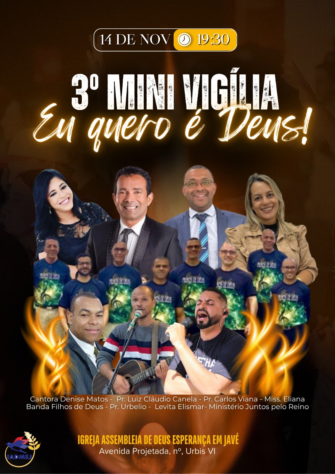 3a. Mini-Vigília com o Tema: Eu quero é DEUS no dia 14 de novembro de 2025, às 19:30 horas, na Igreja Assembléia